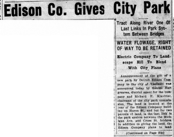 August, 1932 Ypsilanti Press article on the acquisition of a parcel for Riverside Park