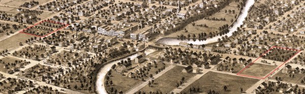 1868 Panoramic map showing the two city squares.