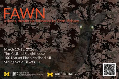 Interdisciplinary artist and award-winning filmmaker Charli Brissey presents the premiere of a new dance theater performance, FAWN, at the Ypsilanti Freighthouse March 13-15, 2026. This 75-minute solo show is directed and performed by Brissey and includes an original 5.1 surround sound score and lighting design by UM faculty Jess Fialko. Showtimes are 8pm Friday and Saturday and 6pm Sunday, with doors opening 30 minutes before showtime each night. Tickets are sliding scale, free for Ypsilanti residents.
