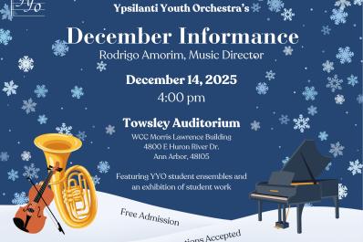 Join for an informal presentation designed to show our community the process behind learning an instrument. The Informance will feature YYO student ensembles and classes (ages 4-18) and an exhibition of student work.